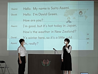 先週の全校朝会(10月14日)で、本校の代表生徒である1年生2名、2年生1名、3年生1名がスピーチコンテストで発表するものを披露してくれました。英語の発音はもちろんのこと、表現も意識したものでした。学校だけの練習ではなく、家庭でも自主練習に励んでいたことがわかるぐらいすばらしい発表でした。(下の写真は、全校朝会時のもです)